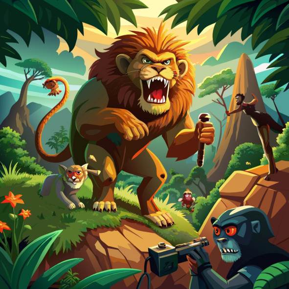 Initially, in a small kingdom ruled by King Alexander, there was a fierce lion named Asher who lived in the jungle. King Alexander was known for his hunting skills and decided to track down Asher to add him to his collection of trophies. After a long hunt, King Alexander finally found Asher and took aim with his bow and arrow. However, he missed his shot, and Asher retaliated by jumping on King Alexander, killing him in battle. The villagers witnessed this and, impressed by Asher’s bravery and strength, decided to make him their new king. Asher ruled the kingdom with fairness and justice, proving that sometimes the least expected can become the greatest leaders.
