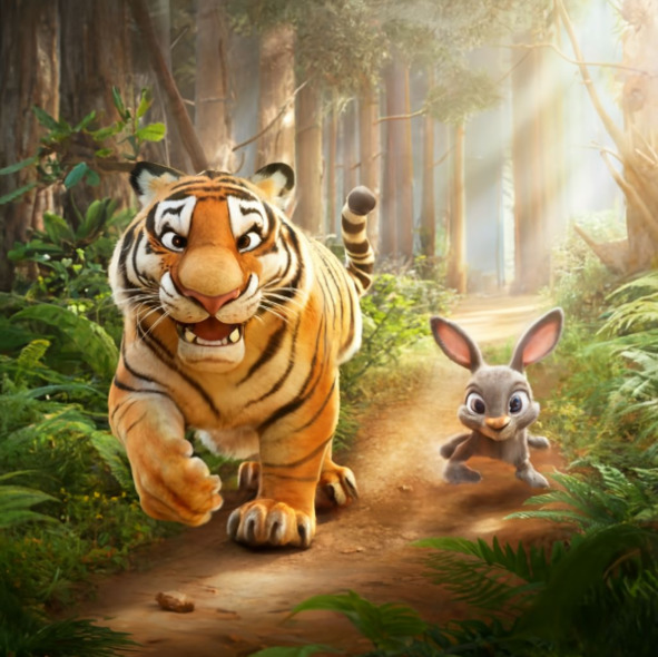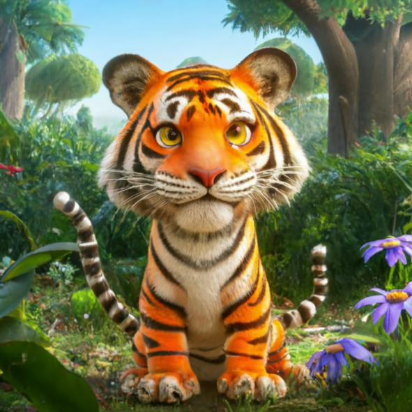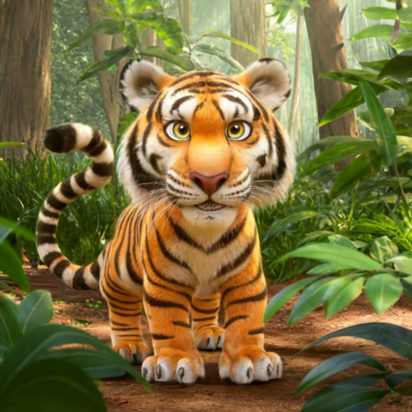 В пышном зеленом лесу, где высокие деревья шептали секреты ветру, а солнечный свет танцевал сквозь листву, жил величественный тигр по имени Пол. Он был известен повсюду своими яркими оранжевыми и черными полосами, своим мощным ревом, который эхом разносился по деревьям, и, самое главное, своим игривым характером и добрым сердцем.