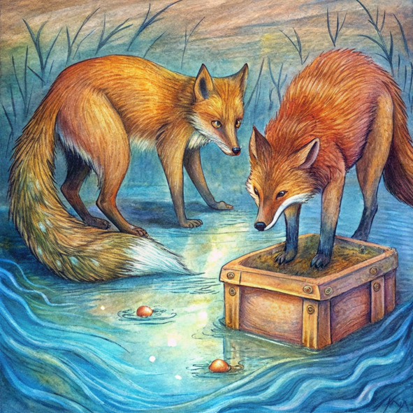 В конце концов, игривые выдры вернулись к своим забавам, оставив трех лис наедине с надвигающимися трудностями их поисков, их надежда немного таяла с каждым игривым предложением, с которым они сталкивались. Они устали, они были сбиты с толку, но их поиски секретов сокровища были далеки от завершения. Река, словно гигантский шепот, открывала им свою мудрость.