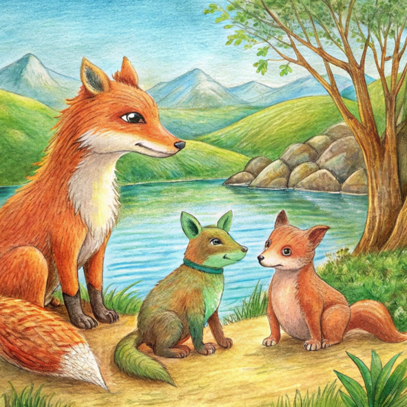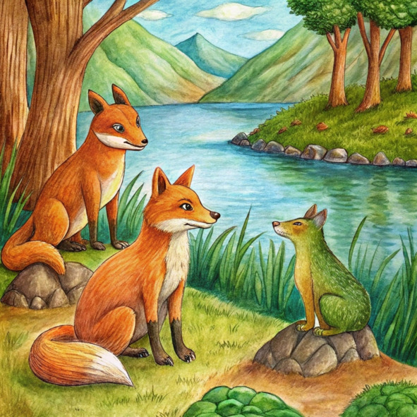 – С этими словами старая черепаха зашаркала обратно в прохладные глубины реки, оставив трех друзей-лис с легким разочарованием и вдохновением.