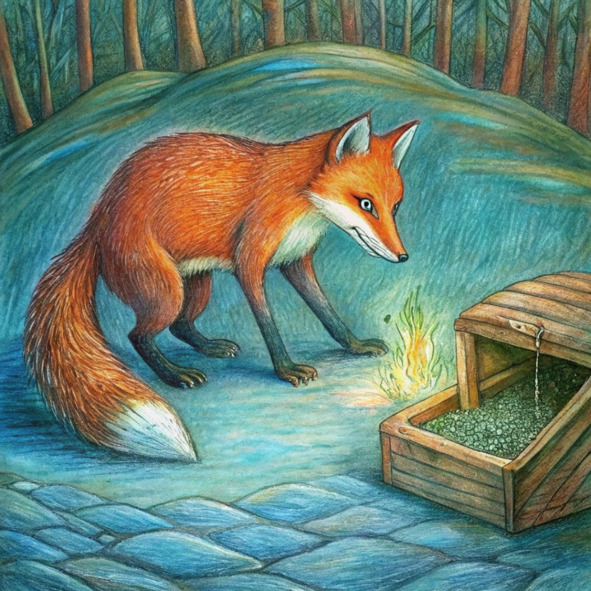 Воздух отяжелел от ожидания, тишина опустилась на трех маленьких лисичек, когда они кружили вокруг древнего сундука. Они испробовали все: грубую силу, деликатную щекотку и даже стратегически расположенные камни. Но тяжелая крышка оставалась непоколебимой, безмолвным стражем хранимых в ней секретов.