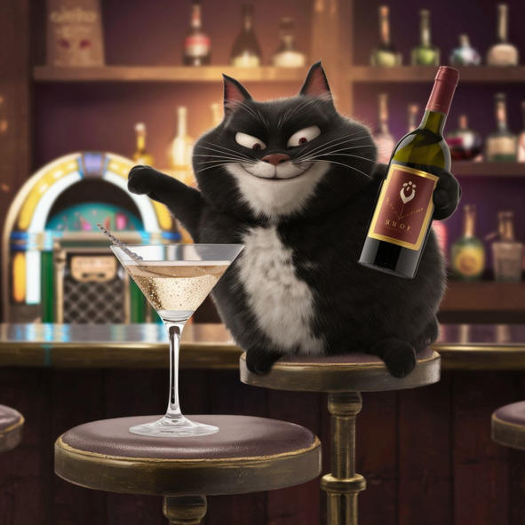 В самом центре города, где ярко сияли неоновые огни и улицы кипели от активности, черный кот Матео и его приятель по работе Томми вошли в логово Усача. Уютный бар был наполнен смехом и болтовней, а воздух был наполнен теплым ароматом свежесваренных напитков.