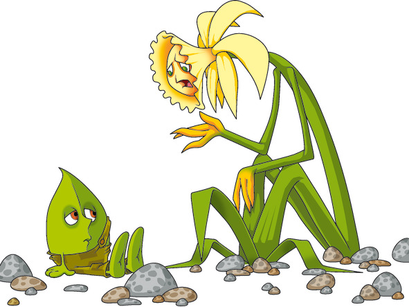 – Но! – властно сказал волшебник. – Это сложная задача. По дороге к паучьему королю тебя ждут испытания. Я дам тебе одну волшебную вещицу. Она пригодится тебе в дороге, – и с этими словами старик выудил из своих широких лепестков маленькое зернышко. – Это волшебное зерно. Ты должен капнуть на него всего лишь одну капельку воды, и тогда появлюсь я. Чем смогу – помогу. Но помни: зернышко исполняет только три желания.