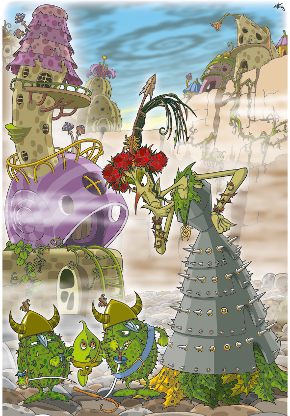 Следом за Колючкой шагала ее армия. Пузатые кактусы носили за поясом острые шпаги, а на их головах так же, как и у повелительницы, красовались отравленные стрелы.