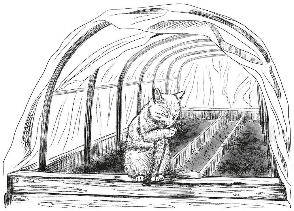 То, что это была именно кошка, я даже не сомневался. Белая, с серым шарфом на шее, маленькая и аккуратная, она сидела на мамином парнике и с размеренным спокойствием вылизывала переднюю лапу.