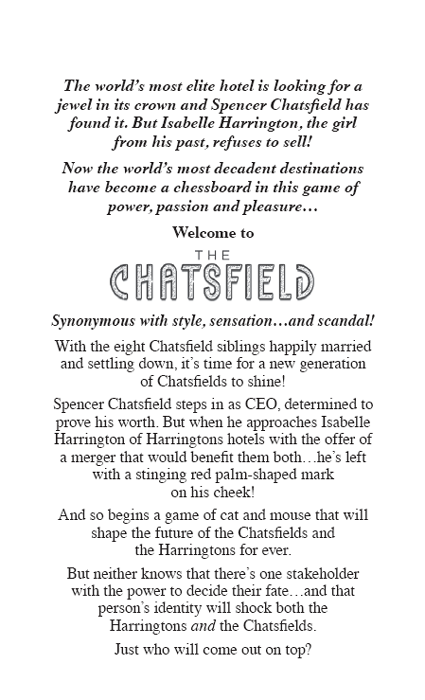 Isabelle suppressed a shiver as that cultured baritone with its English accent moved down her spine like a caress. She had to focus. This was the moment the Chatsfield family were waiting for, the moment when the final two per cent would be brought back to the table. She knew exactly who was going to walk through that door. Had known for quite some time. Had known and wondered how no one else had put the pieces of the puzzle together before now. The blowout in the press would be monumental. The Chatsfields were good at attracting scandals but this one was going to top the lot.
