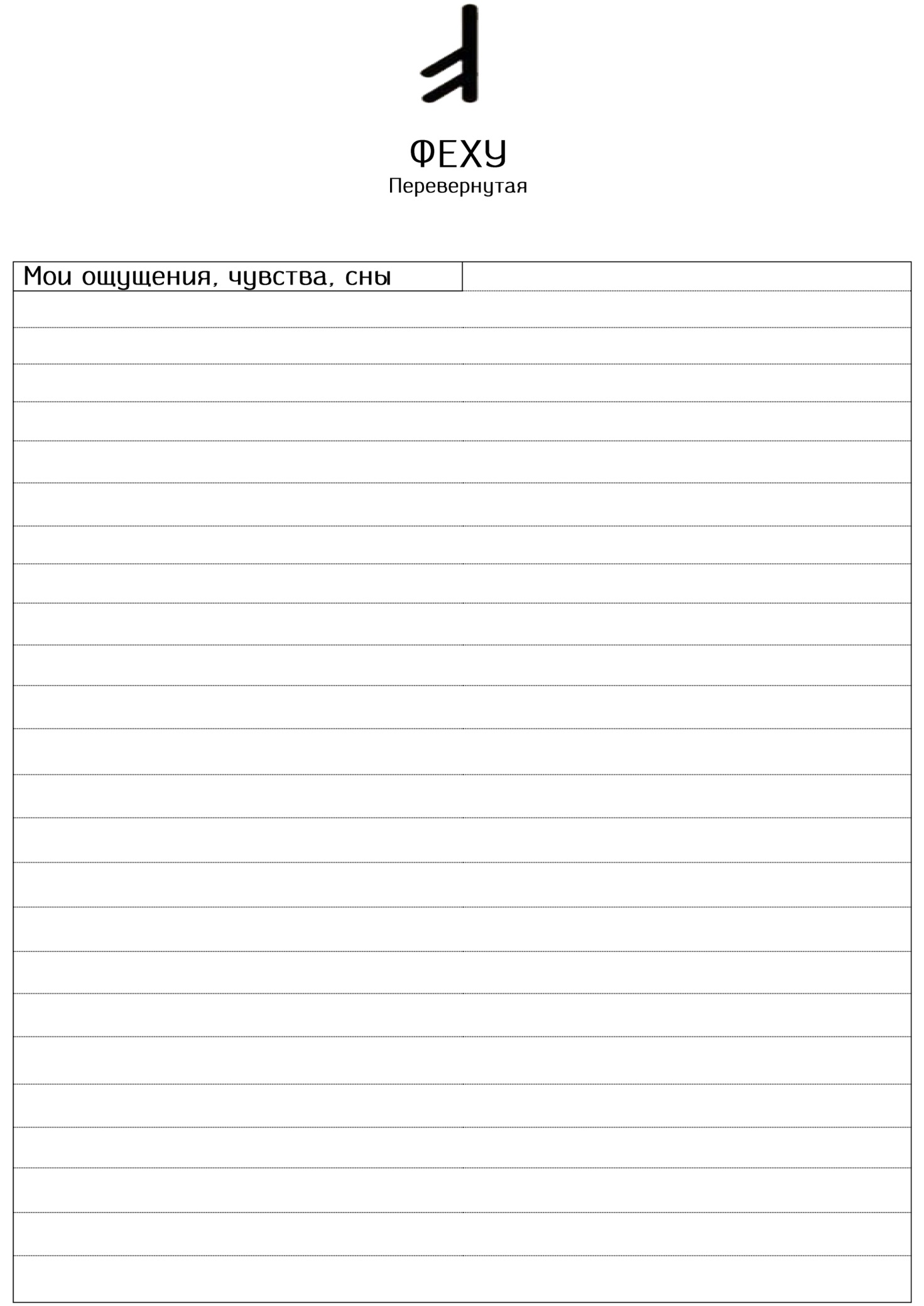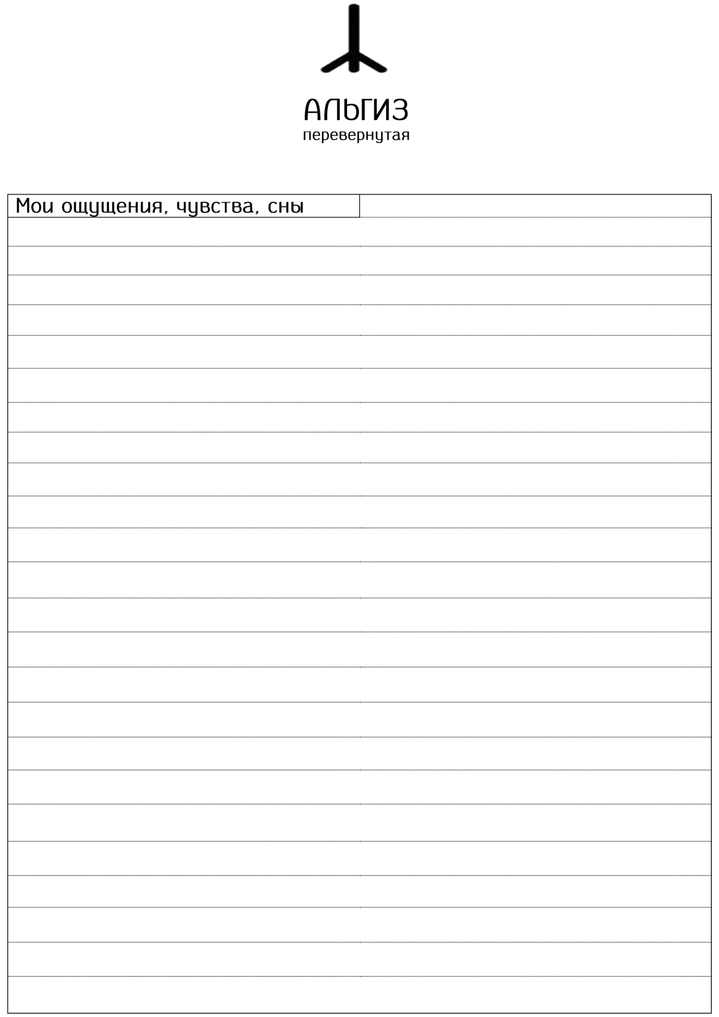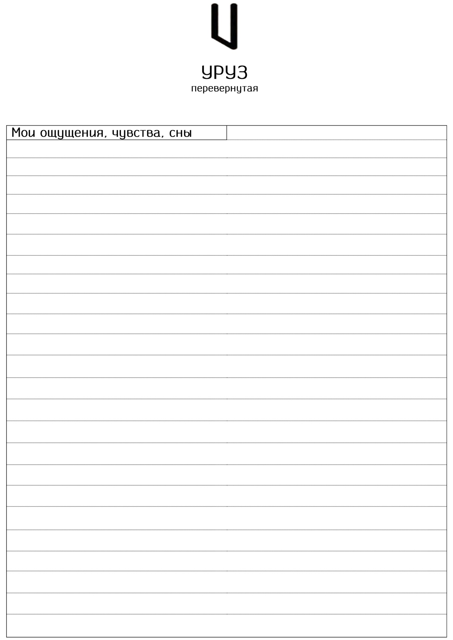 Трактовка Руны – после того, как вы запишите ваши ощущения, чувств, сны, исходя из этих данных, запишите общую трактовку для руны.
