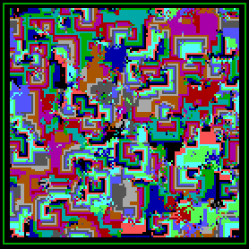 В восьмидесятые годы не было, пожалуй, ни одного программиста, который не был бы знаком с «Жизнью». По ней писали математические диссертации, философские эссе и фантастические рассказы. Экспериментаторы не ограничивались двумя состояниями клеток – на смену черно-белой Life пришли цветные «клеточные машины». Теперь любая клетка могла находиться в одном из тысяч состояний-цветов, а правило «общения» клетки с соседями можно было самостоятельно менять, пробуя все новые и новые формы электронного калейдоскопа.