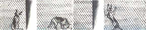 В питомнике он запер пса в просторную клетку. Из собачьей кухни принес и поставил ему кастрюлю с жирным супом. К вечеру, перед уходом домой, Глазычев зашел его проведать. Кастрюля лежала на боку, суп из нее вытек. Пес кинулся на проволочную сетку, встал на задние лапы и зарычал.