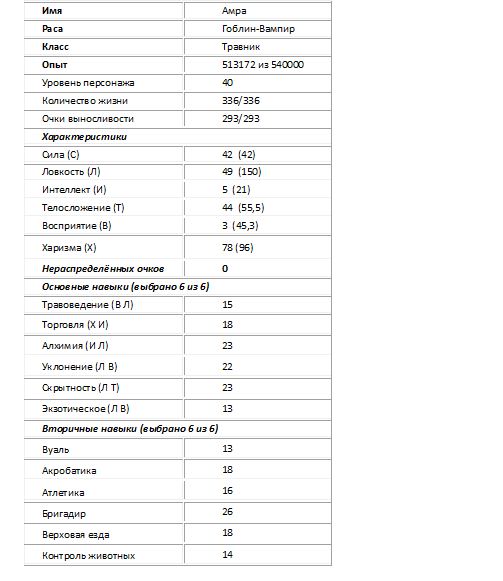 Перед глазами выскочила таблица с характеристиками моего персонажа: