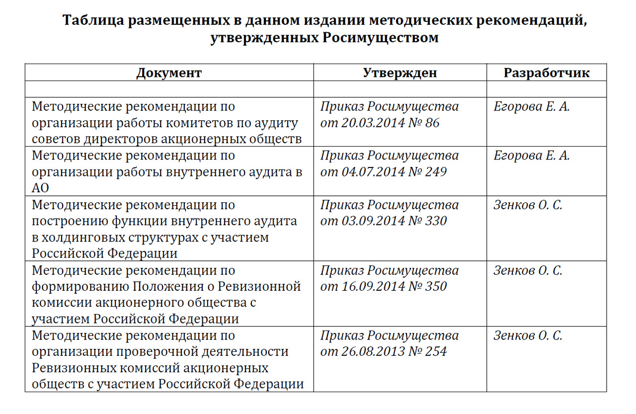 Значительная часть методических рекомендаций, представленных здесь, была подготовлена членами Экспертных советов НИИ КПУ и членами Экспертно-консультационного совета Росимущества, входящими в Комитет по управлению рисками и внутреннему контролю. Ряд методических рекомендаций, вошедших в настоящий том, был утвержден Росимуществом в качестве рекомендательных нормативных документов для использования в деятельности акционерных обществ с долей государственного участия.