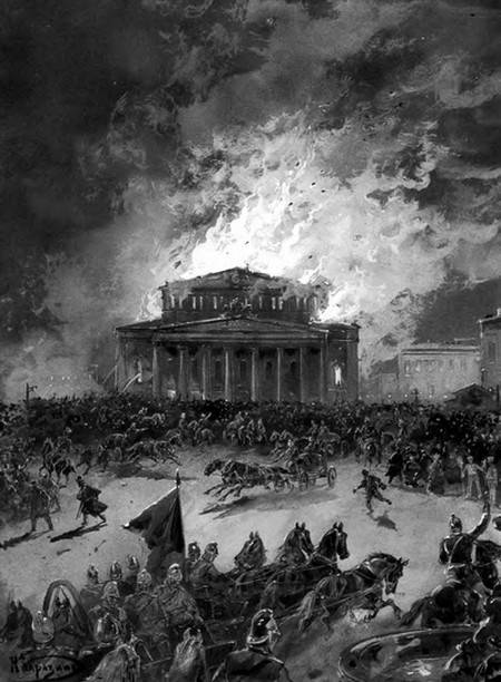 В 1805 году, зимою, Петровский театр сгорел от неосторожности гардеробмейстра: собирались играть «Русалку», но как пожар произошел до начала спектакля и публика только начала съезжаться, то с людьми несчастия не последовало. После пожара театральные представления в Москве не прекращались.