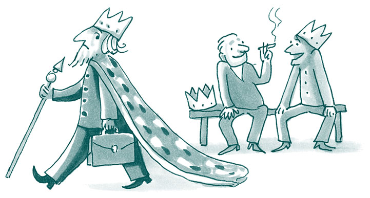 • На головах руководителей и сотрудников вырастают короны – каждый мнит себя главным. И меряется короной с соседом. Примерно так (рис. 6):