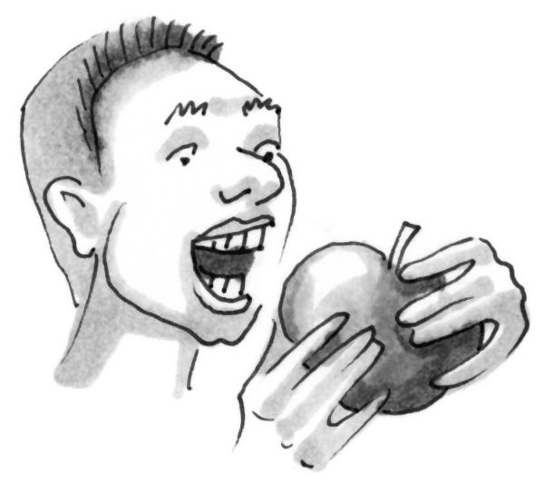 ♦ Финальный контакт. Наш герой совершает основное действие. Он достает яблоко, моет его и, наконец-то вгрызается в его ароматный сочный бок. Ощущает, как сок и мякоть наполняют рот, а затем и горло. Он жует, погружается в ощущение слияния с выбранным объектом удовлетворения потребности – яблоком. Постепенно по мере поглощения оно становится частью человека.
