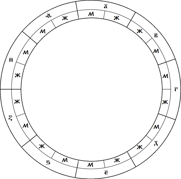 Дома СтихийДома Стихий – это девять отрезков небесной сферы, расчет которых производится на основе суточного вращения нашей Земли вокруг своей оси, где восточная линия горизонта играет роль начала отсчёта и обозначается сокращением от буквицы Азъ. Другими словами, Аз – это градус восходящего знака в определённый момент времени. Таким образом, знак в котором находится Аз, будет являться началом отсчёта сетки домов, то есть первым домом.
