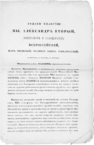 Манифест Александра II об отмене крепостного права. 1861 год[7]