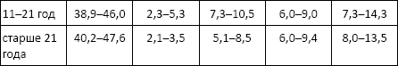 • общий белок сыворотки крови у взрослых – 65,0–85,0 г/л.