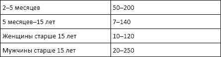 • дети 1–6 месяцев – 160–435 Ед/л;