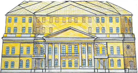 На камне фасада музея по Малому Знаменскому переулку видны выщербины. Это следы бомбардировок 1941 года.
