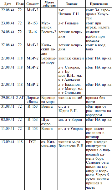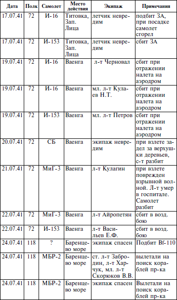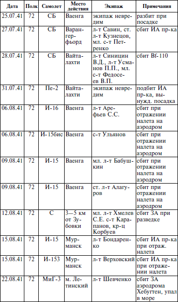 Стоит сказать, что к концу года произошло и качественное усиление ВВС Северного флота. Так, в июле в 72-й сап поступили 6 новых бомбардировщиков Пе-2, что позволило сформировать 5-ю эскадрилью полка. Тогда же на Север прибыло 10 истребителей МиГ-3 (с завода) и 22 И-16 из других частей ВВС ВМФ, а в августе – еще 10 И-153 из состава ВВС ЧФ.