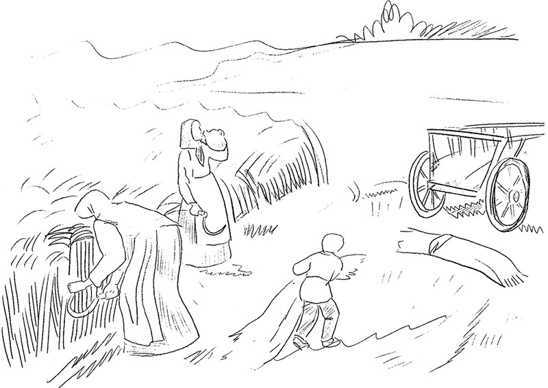 Анна работала серпом, внаклонку, позади нее двенадцатилетняя Капа вязала снопы, за ней Мила, которой только на днях исполнилось десять, ставила их в «суслоны».