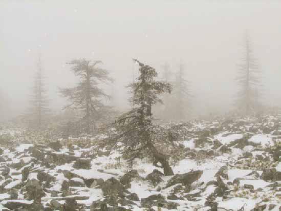 Порой пурги являются неотъемлемой частью погоды на сложных горных участках. Эти районы летом легко узнать по безлесью, по угнетённой растительности, по голым пятнам земли, с которой содран прикипевший к ней лишайник; зимой они узнаются по твёрдым надувам и застругам, которые даже не ухватишь лопатой.