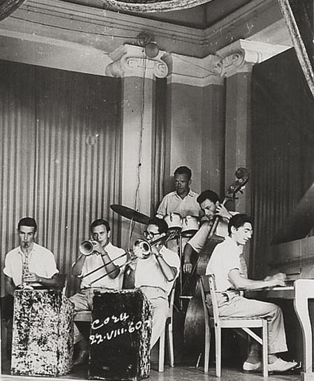 Джаз в ресторане «Курортный» – В.Грачев, М.Царев, Ю.Мушперт,М.Терлицкий и др., Сочи, 1960. (из архива М.Царева)