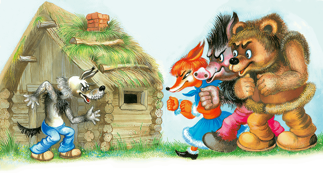 Однажды Вася гулял по лесу и увидел большой-пребольшой дом, в котором жил страшный-престрашный Волк. Он готовился навестить трёх поросят, семерых козлят, Красную Шапочку и её Бабушку.
