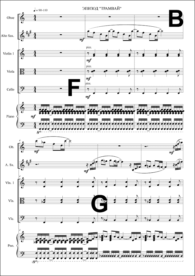 Фрагмент партитуры Ираиды Юсуповой к мультимедийной постановке «Квинтовый круг»