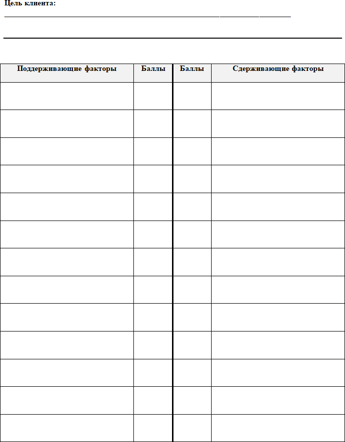 Форма для исследования поддерживающих и сдерживающих сил приведена на следующей странице.