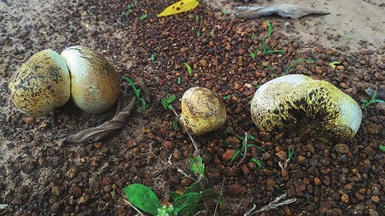Нередки в полупустынях своеобразные полуподземные дождевики – пизолитусы. Иногда их принимают за трюфели.