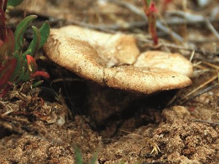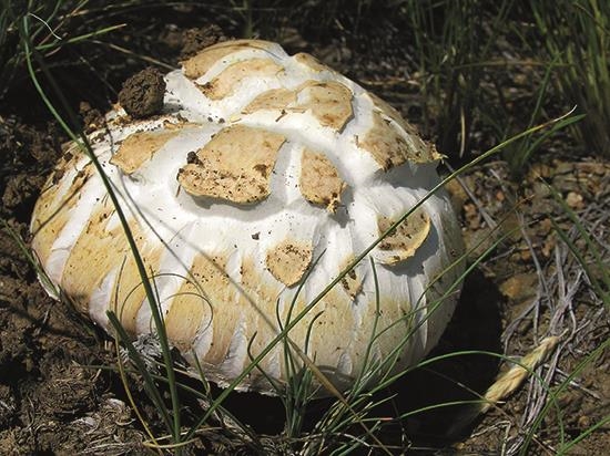 Самый пустынный из наших шампиньонов – это, несомненно, шампиньон Бернара. Он обожает засоленные почвы жарких местообитаний, поэтому часто встречается не только на солончаках и понижениях степного рельефа, но и на дюнах морских побережий, иногда выдавая большие урожаи прямо на пляжах. В городах теплых стран он появляется по обочинам дорог там, где в короткий зимний период для борьбы с гололедицей в качестве реагента используют соль. Гриб обычно формируется под землей, а затем пробивает почву, солончак или такыр, как и его родственник шампиньон тротуарный, весьма на него похожий. Главное отличие тротуарного шампиньона Бернара от шампиньона тротуарного (помимо местообитания) – одинарное, а не двойное кольцо на ножке и кисловатая мякоть. Одна из интересных особенностей шампиньона Бернара – способность к избирательному гипернакоплению серебра. Если в норме в обычной засоленной почве содержится около 1 мг серебра на 1 кг почвы, то его концентрация (в пересчете на сухой вес) в шляпке шампиньона Бернара достигает 544 мг на 1 кг (в ножке примерно вдвое меньше)! Это, вообще-то, круче святой воды[5]. На большой жаре шляпка у гриба лопается на характерные крупные фрагменты мякоти.