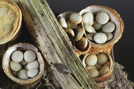 В диких степях чаще встречаются грибы с мелкими плодовыми телами – денежки, мицены, галерины и проч., что, скорее всего, объясняется (как и для тундровых грибов) неблагоприятными условиями роста, при которых трудно «выгнать» крупные плодовые тела. Но попадаются и совсем крупные «степняки», вроде грибов-зонтиков и шампиньона крупноспорового, которые приспособились к жизни и плодоношению на ветру, в жаре и сухости, развив мощную, уходящую глубоко в почву грибницу. Они легко переносят засуху в стадии грибницы и к выгонке плодовых тел приступают только когда с влагой все хорошо, поэтому иногда даже не ежегодно, и чаще весной и в начале лета, когда влажность почвы и воздуха еще велика (в более влажной лесной полосе плодоношение у них сдвинуто на вторую половину лета и начало осени). В ковыльных степях растет примечательный трутовик корнелюбивый, паразитирующий на ковыле и колосняке; в европейских и сибирских степях встречаются интересные грибы-звездовики – сибирский (только в Сибири), цветковидный, бородавчатый и венгерский, а также звездчатка гигрометрическая. Маленькие, необычно выглядящие дождевички, похожие на птичьи гнезда с отложенными в них яйцами – бокальчик гладкий и бокальчик Олла – осваивают подстилку из травяного опада и случайные фрагменты древесины.