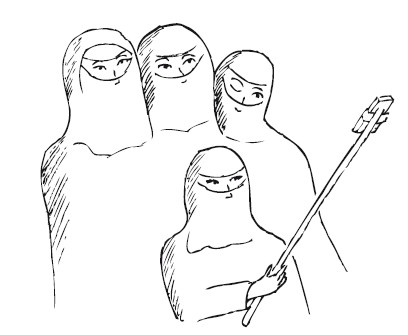 Валькирия учит жён делать селфи. Все фоткают себя в парандже.
