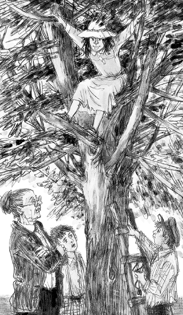 Чтобы избежать трёпки, Лёля, оказывается, влезла на дерево и, сидя на дереве, дразнила меня и бабушку языком.