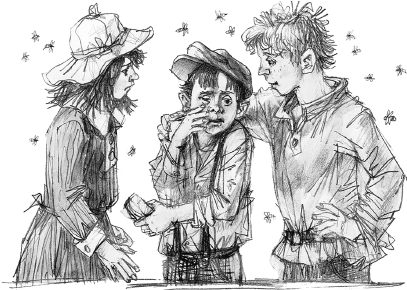 Вдруг над нами стали кружиться осы. И одна из них, желая, видимо, попробовать мой сахар, ужалила меня в щёку. Вскоре моя щека вздулась, как пирог. И я, по совету Стёпки, стал прикладывать к ней мох, сырую землю и листья.