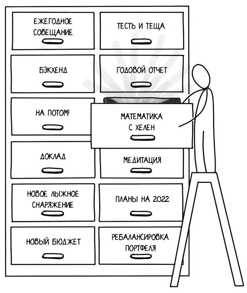 Почему надо думать раздельноСложнейшая в современной трудовой деятельности задача звучит следующим образом: как уместить все важные вопросы под одной крышей, да так, чтобы она не «поехала»? И речь идет не только о мейлах, на которые нужно ответить, нехватке финансирования, краткосрочных проектах и долгосрочных обязательствах, но и о воспитании детей, болезнях стареющих родителей, мечтах о собственном доме, своем здоровье, хобби, дружбе, любви и сне. Мы должны и хотим обо всем заботиться, потому что это важно. Такова жизнь. Только вот как со всем этим справиться? Ответ известен: разложить всё по полочкам. Раздельное мышление не надо путать с маниакальным стремлением к порядку. Здесь имеется в виду психологический защитный механизм, который помогает нам справляться с различными, часто противоречащими друг другу задачами и впечатлениями. Суть компартментализации[5] состоит в том, что человек концентрируется на одной задаче, не отвлекаясь на другие. Иными словами, по мере необходимости вы выдвигаете из шкафа нужный ящичек, держа остальные закрытыми.