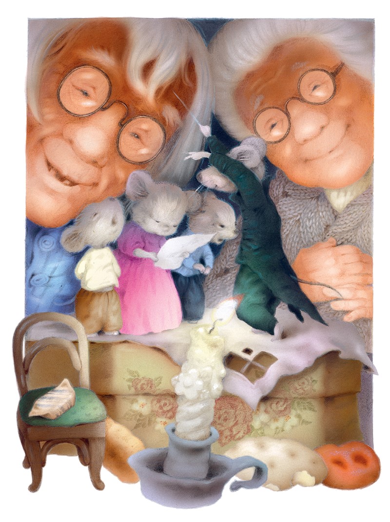 В её голосе звучала тревога. Ещё бы! Ведь волновалась она, представьте, о мышиной семейке, которая уже давно жила в их доме и очень полюбилась старикам.