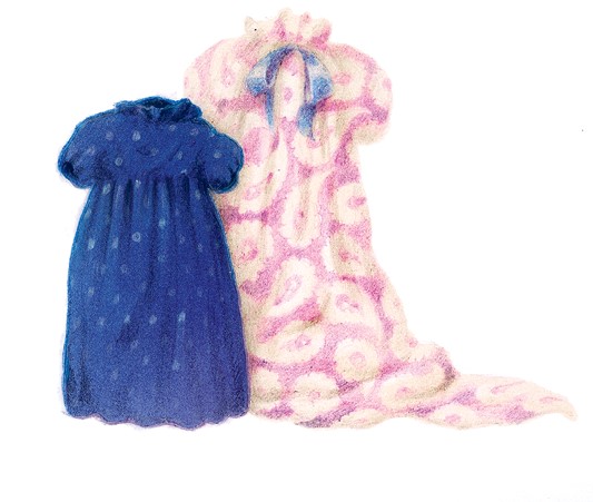 Мусе выбрали платье красного цвета, Юсе – жёлтое с красивым рисунком, а Матильде – премиленькое синее, в горошек. К сожалению, оно было раза в два больше самой Матильды – меньшего не нашлось.