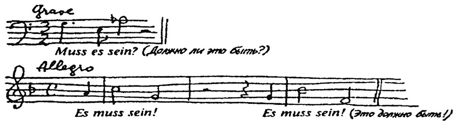 To был намек. Последняя часть последнего бетховенского квартета написана на эти два мотива: