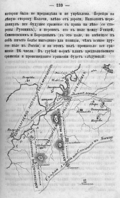 Позвольте мне проиллюстрировать интерпретационную силу такого взаимодействия родственных искусств при помощи двух листов бумаги. Первый мы найдем в картине Репина «Запорожцы пишут письмо турецкому султану» (1880–1891), которую Толстой раскритиковал в октябрьский вечер 1880 года, хотя, как кажется, недостаточно убедительно, поскольку Репин вернулся к этой теме и развил ее, превратив в одно из своих до сих пор самых актуальных полотен (рис. 1). Посмотрим, в частности, на центральную часть репинской картины – на едва заметный белый мазок, изображающий оскорбительное письмо (предположительно составленное для турецкого султана Мехмеда IV в 1676 году), которое послужило вдохновляющей идеей для изображенного сюжета. Второе межхудожественное столкновение мы можем наблюдать в романе «Война и мир» (1865–1869), примерно в его середине, на карте с расположением войск, которая предваряет описанное Толстым Бородинское сражение (рис. 2) [Толстой 1928–1958, 11: 186]. Эти два образа – письмо у Репина и карта у Толстого – будут играть важную роль во второй половине моей книги. В данный момент, однако, я хочу подчеркнуть их статус нарушителей, вторгшихся в чужое пространство. В этом статусе каждый из них создает очаги эстетического самосознания и приглашает к размышлению о механизмах изображения в картине и в романе.