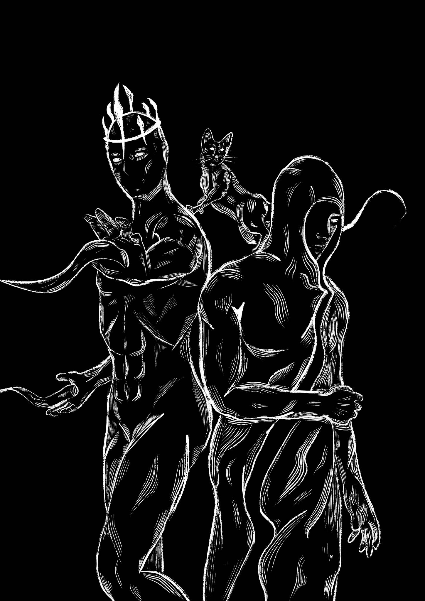 – …договорились? – в Подсознании Король стоял перед Лонгинием с протянутой рукой. Парень сначала посмотрел на неё, потом в искренние глаза инсерпента, медленно встал и совершил рукопожатие. Мельком в его голове пролетели тёплые воспоминания Родиона, где Король пересказывал ему Библию, рассуждал о жизни, шутил и улыбался, после отрывки недавних событий, содержащие в себе эмоции паразита, которые наш герой либо не хотел, либо попросту не заметил, к примеру, как инсерпент был зол на Асуру за произошедшее, как переживал, когда восстанавливал его тело и как с волнением сидел над ним, в ожидании пробуждения. Парню стало так тепло на душе и в то же время не по себе от своего поведения, из-за того, что был слеп, из-за того, что успел себя заклеймить одиноким и брошенным, несчастным и неполноценным, и тут же ему пришла в голову картинка, где я и Родион, улыбаясь, проводим его в этот жестокий и несправедливый свет, сразу после этого – Джонни, разрывающий свою глотку при виде умирающего его, выходящего из формы, а последняя в его голову пришла Лилит, её запах, её нежное прикосновение и трепетный взгляд, вкусный поцелуй, переполненный чувствами, и плевать, что это взаимное чудо произошло из-за того, что они, возможно, носители паразитов. “Плевать!” – подумал Лонгиний, он прозрел, понял, что дурак, понял, что был не прав, понял, что счастливчик, каких нужно поискать, что вся его жизнь, жизнь Джонни и Короля в его руках, что они не обуза, а крылья, которые нужно беречь, чтобы взлететь выше. Потому он крепко обнял Короля, который через рукопожатие прочитал его мысли, потому, то ли по-братски, то ли по-отцовски улыбнулся и обхватил его голову, положив другую руку ему на макушку, прижимая к себе.