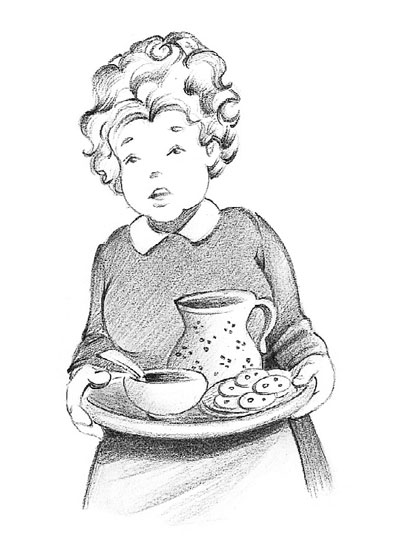 Спрыгнув с постели, она поспешно надела длинные брюки и бархатную полосатую курточку и выбежала из спальни, даже не прикоснувшись к только что испеченным няней бисквитам.
