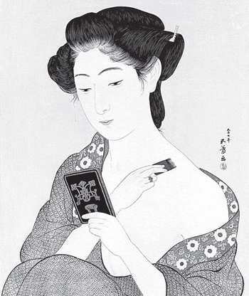 Рядом стоит Хару, и Кейсукэ думает: «Веер». Он перехватывает взгляд зеленых глаз француженки, изящно обведенных темными полукружьями. Она говорит что-то по-английски, Хару со смехом отпускает в ответ какое-то короткое замечание.