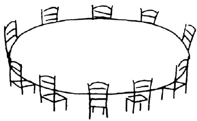 5. Вот стол, во главе которого сидит человек, которого ты хорошо знаешь. Где сел бы ты? Кто этот человек?