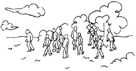 20. Вот твои товарищи идут на прогулку. Обозначь крестиком, где идешь ты.