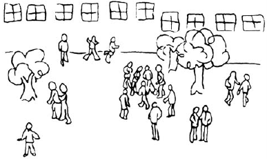 17. Теперь на этом рисунке размести себя и несколько человек. Нарисуй или обозначь крестиком. Подпиши, что это за люди.