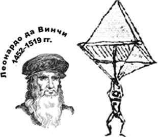 Рис. 1.6. Прообраз парашюта на рисунке Леонардо де Винчи