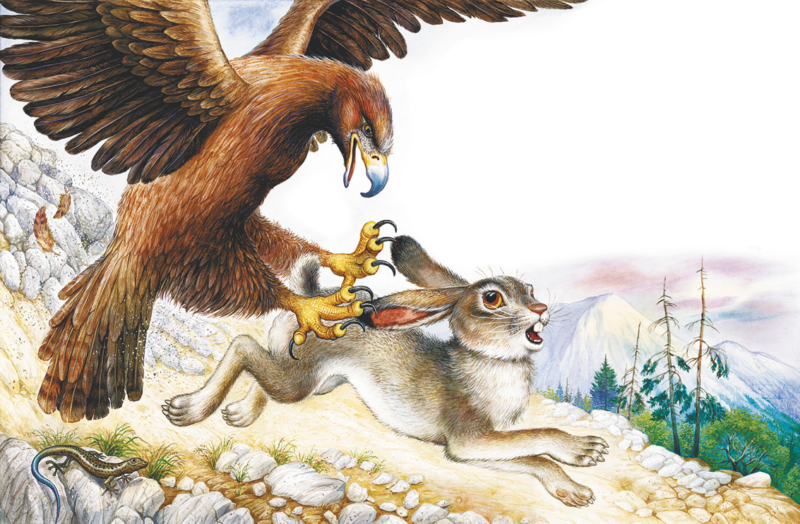 Заяц на бегу вырвал свои уши из страшных орлиных когтей и – шмыг под камни.