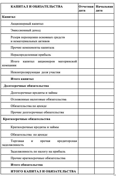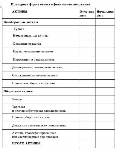 отчет о финансовом положении;